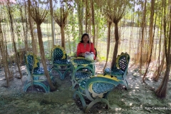 Garden seating, indoors at the main house at the entrance, and outdoor at train station #3.