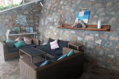 16 rooms, all with air-conditioning, hot water, and satellite TV. The double and twin rooms all have balconies overlooking the ocean. Family rooms overlook the gardens, and have private verandas. The swimming pool, fed by a waterfall, and a jacuzzi is included in a night’s stay. Rooms are $45 per night.