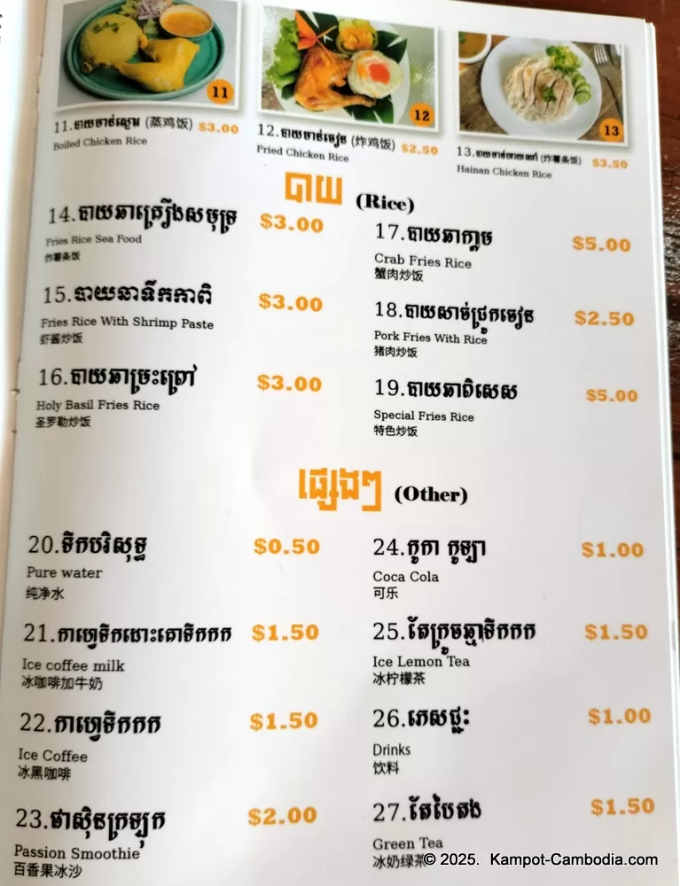 Large Western and Khmer menu.