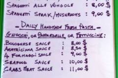 Homemade pastas and pizzas.
